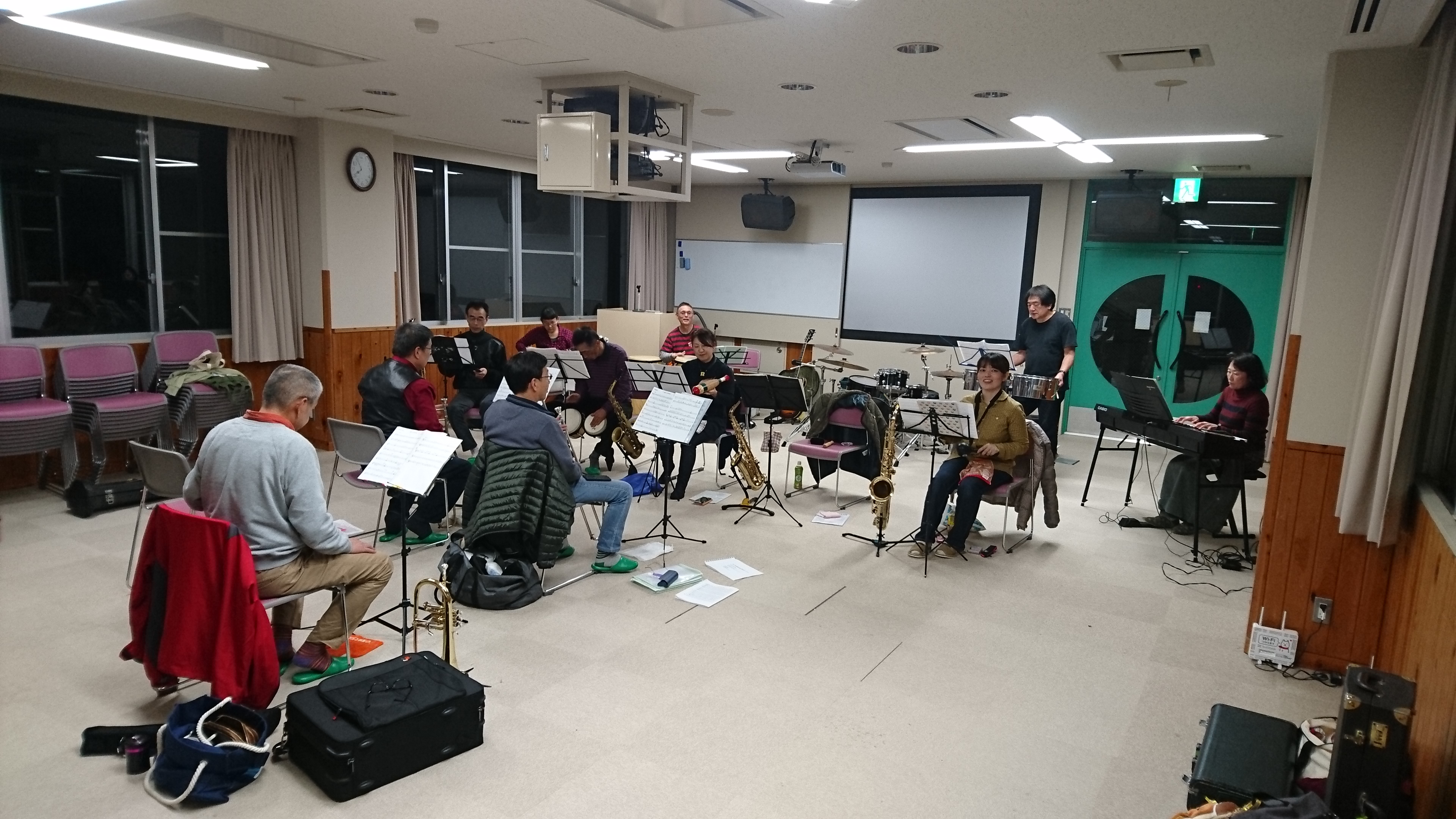 ボーカルさんも来て下さって、いつもは広々使っていた練習場もギュウギュウな感じです。