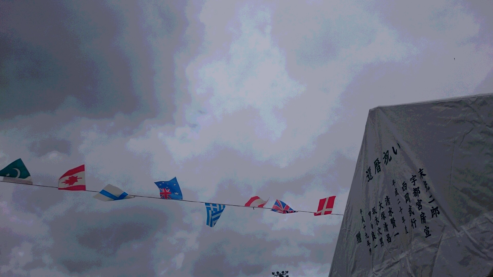 星条旗と不似合いな曇り空。