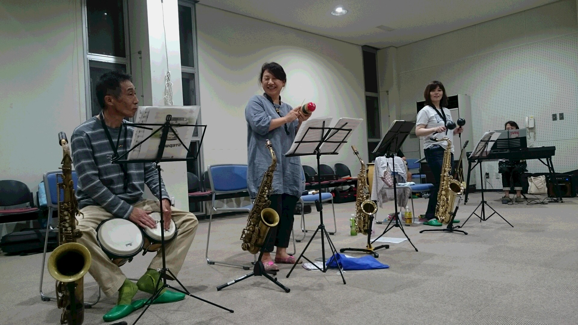見学といっても、なんじゃけんでは楽器持参でいきなり練習にご参加いただいています。