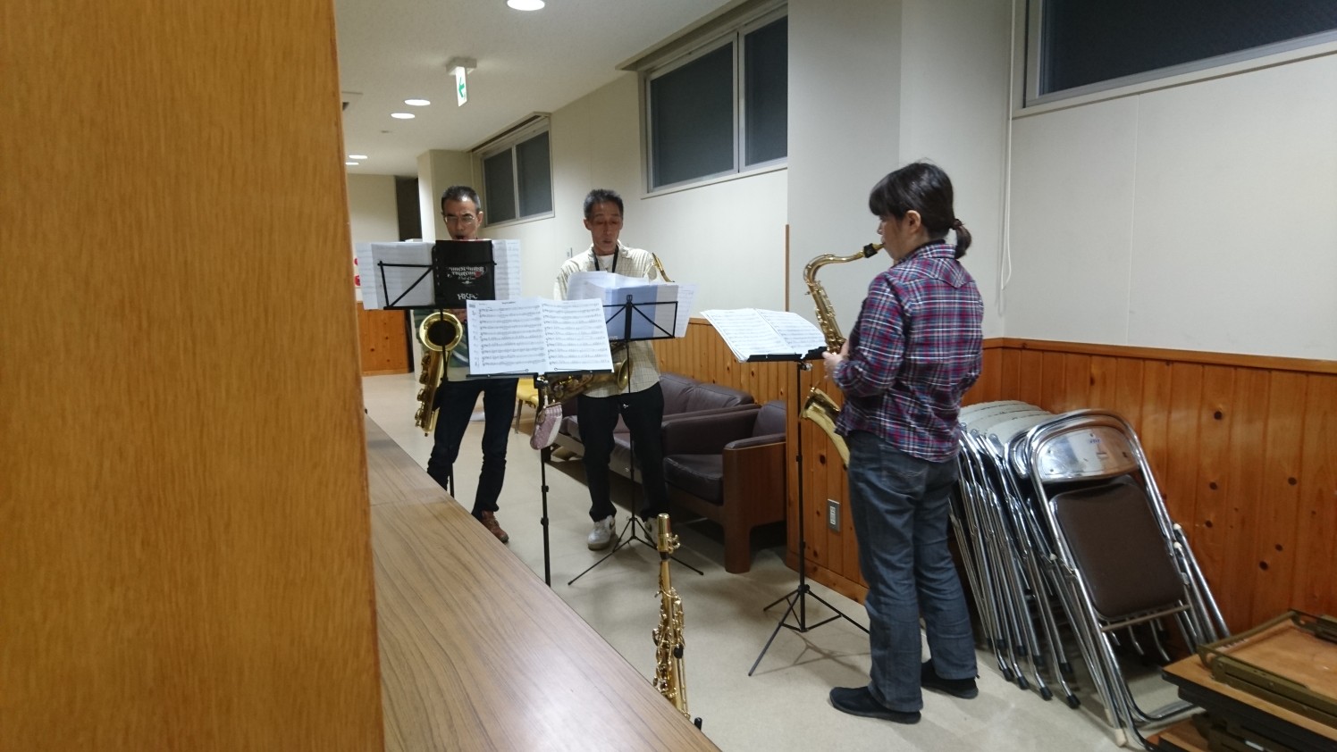 サックス隊は、大体毎回早く集まって練習しています。